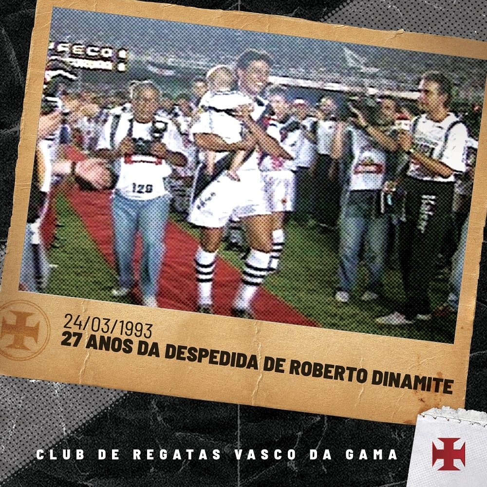 Via Twitter, Vasco relembra despedida de Roberto Dinamite dos gramados