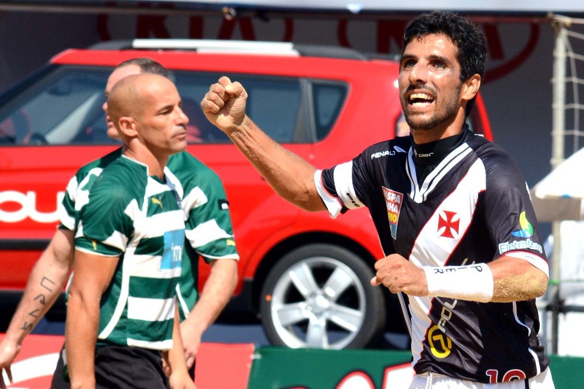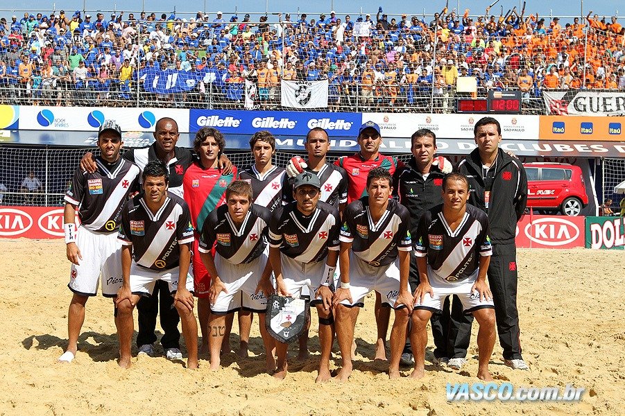 Neste dia, há 9 anos, o pioneiro @VascodaGama batia o Sporting (POR) por 4 e 2 em Guarapiranga (SP) e se tornava o primeiro clube Campeão Mundial de Beach Soccer da história. Bruno Xavier, Rafinha, Pampero e Betinho marcaram os gols da vitória de virada que garantiu o título inédito ao Trem-Bala da Areia. O ídolo vascaíno Jorginho, eleito 3 vezes o melhor jogador do mundo, participou da conquista com a camisa vascaína. ??