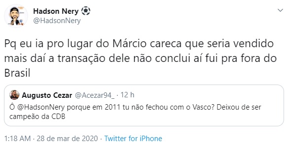 Ex-BBB e ex-jogador Hadson Nery lembra o quase acerto com o Vasco em 2011: 'Eu ia pro lugar do Márcio Careca'