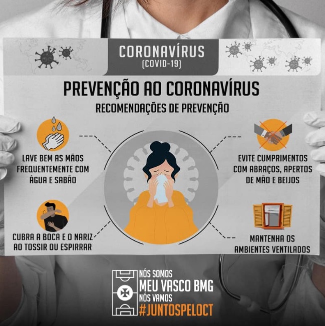 BMG informa sobre prevenção ao coronavírus por meio dos clubes que patrocina, como o Vasco