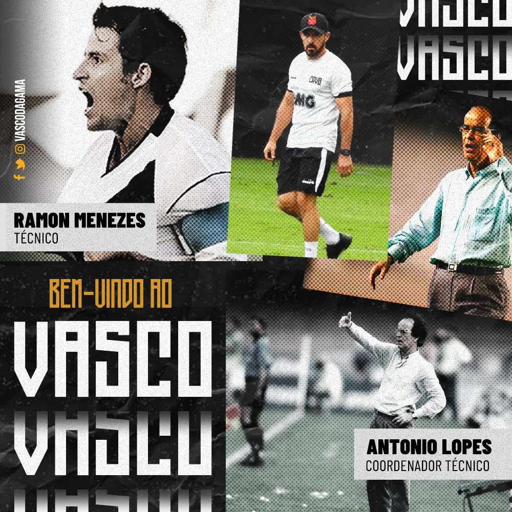 Veja como o Vasco anunciou no Twitter a efetivação de Ramon e a volta de Antonio Lopes