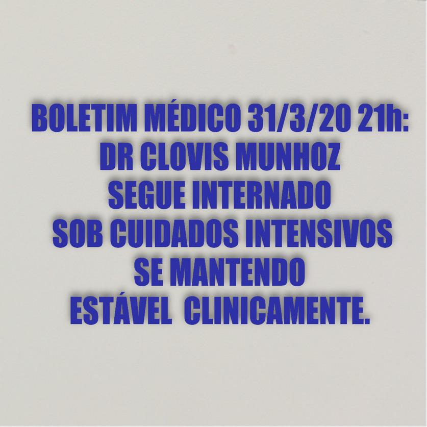 Dr. Clóvis Munhoz segue internado sob cuidados intensivos e se mantém clinicamente estável