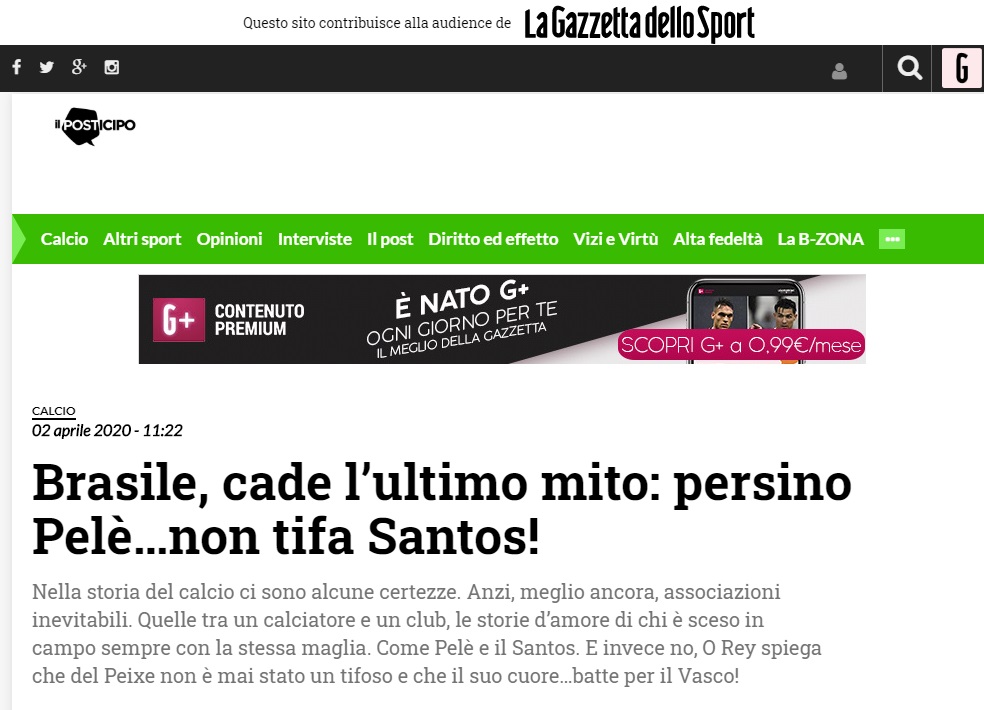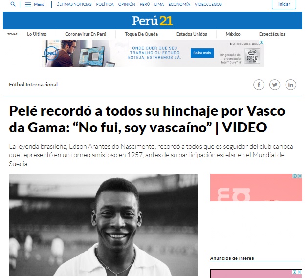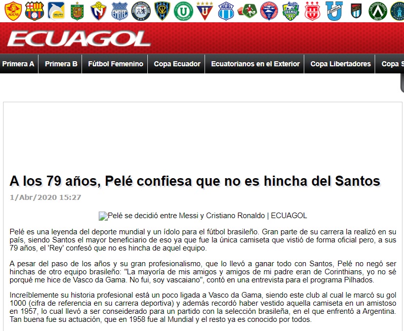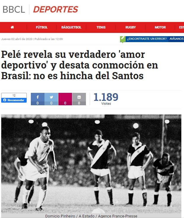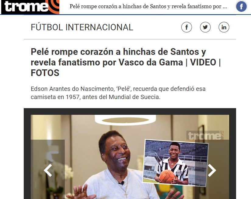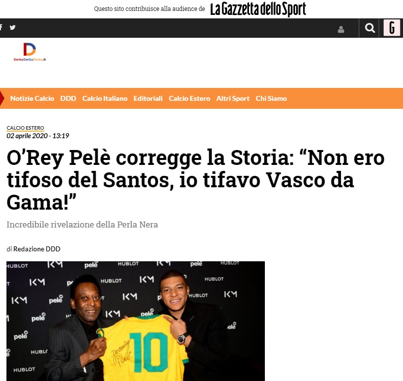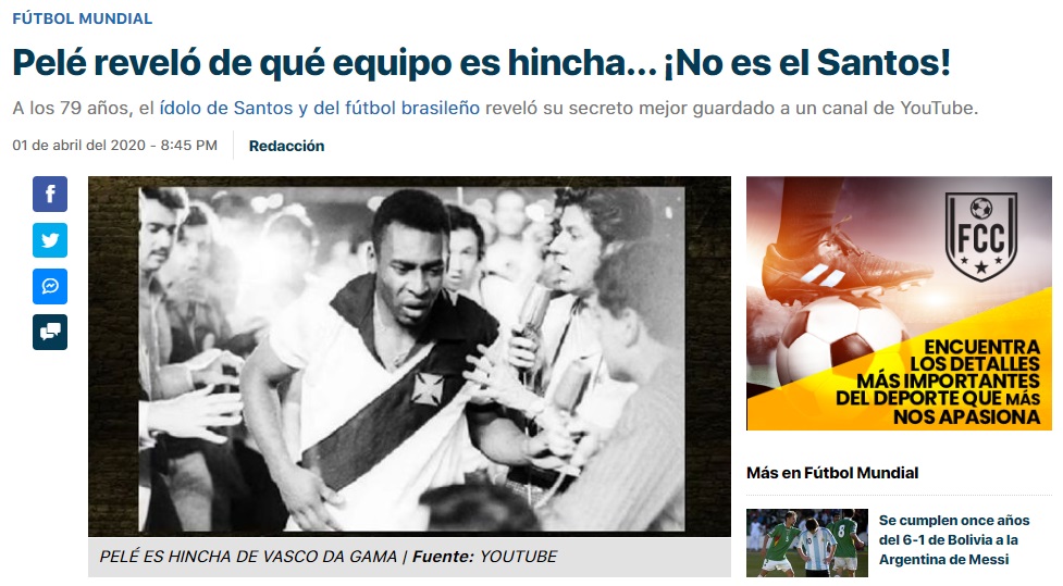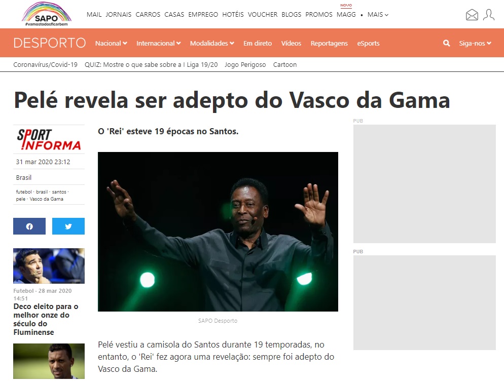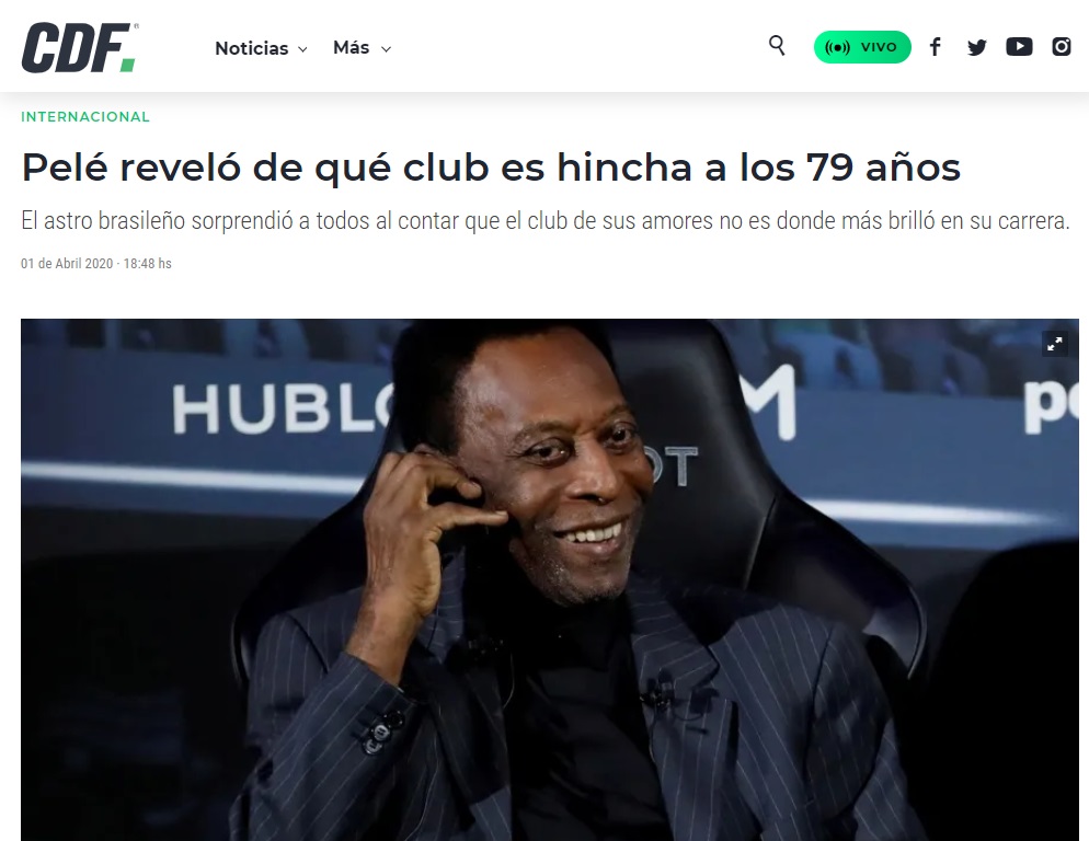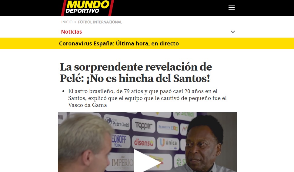 A entrevista de Pelé ao canal Pilhado do Youtube, do jornalista Thiago Asmar, em que o Rei do Futebol reafirmou sua torcida pelo Vasco repercutiu em todo o mundo. Veja, abaixo, alguns exemplos.