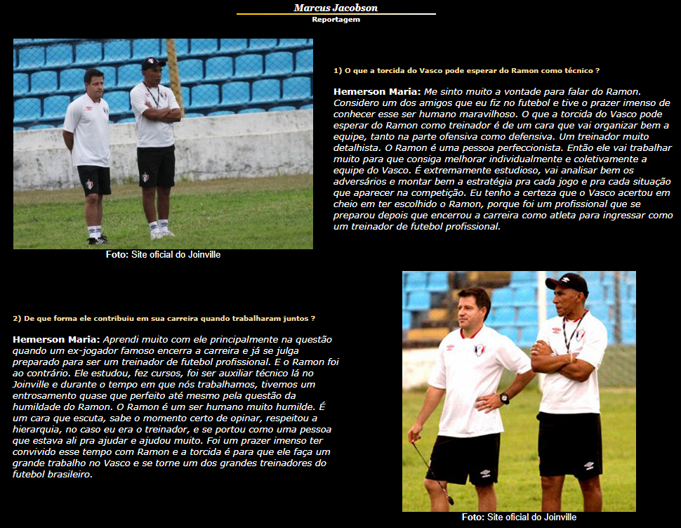 Hoje tive a oportunidade de conversar com o treinador Hermerson Maria, com quem Ramon Menezes trabalhou no Joinville como auxiliar e dali em diante seguiu a carreira de técnico em outros clubes. Ramon sempre exaltou seu trabalho revelando que aprendeu muito com ele.