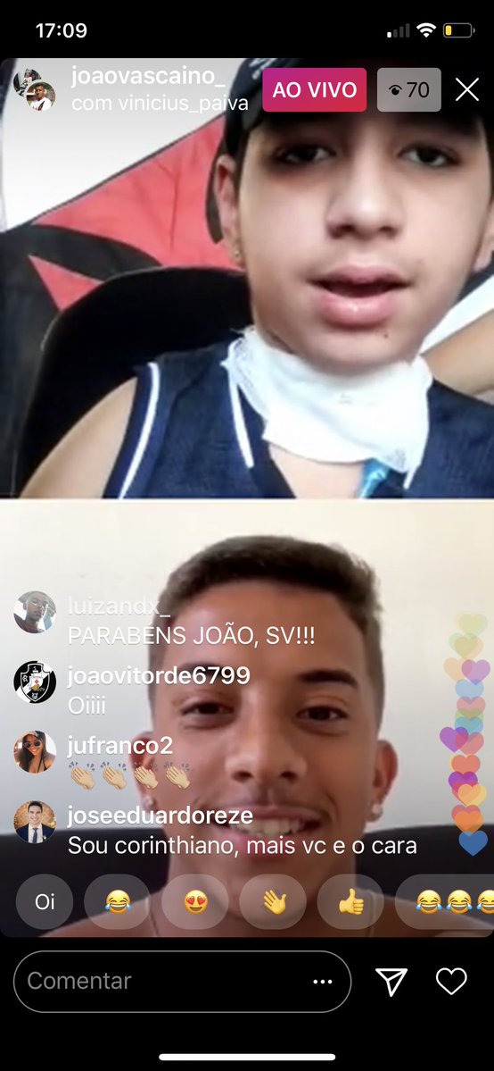 Jogadores se uniram para cantar parabéns via Instagram para o pequeno vascaíno Joãozinho