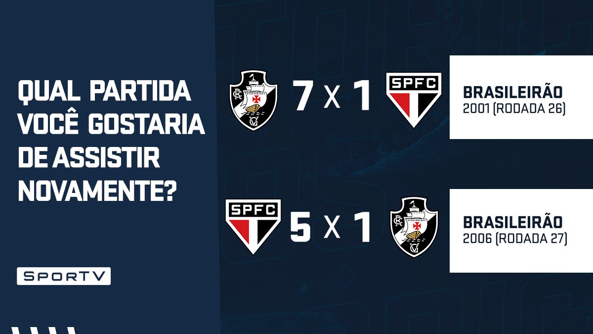 Duas grandes partidas para você escolher pro #SporTVRetro desta terça (07). Qual torcida fará seu time vencer? @VascodaGama ou @SaoPauloFC ?