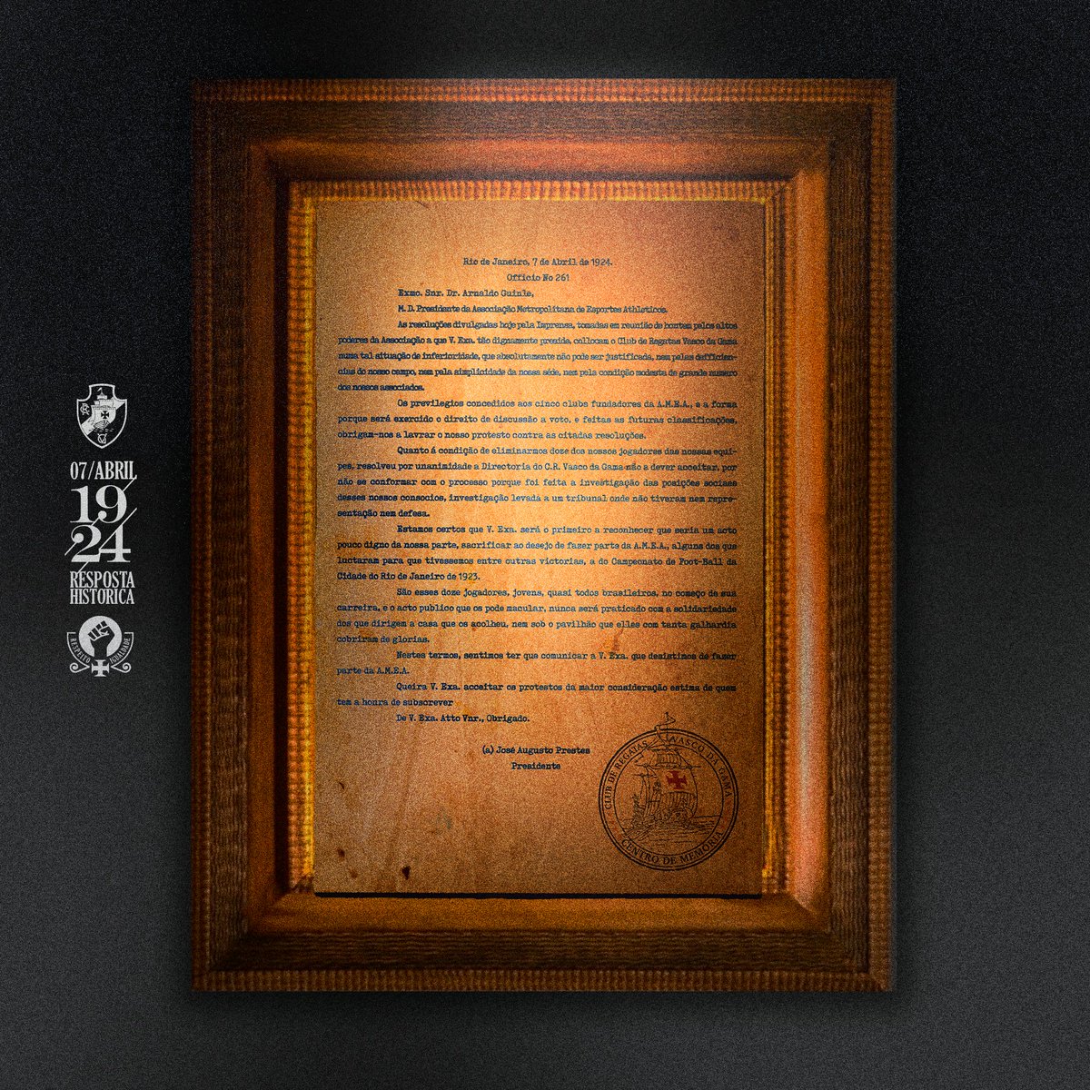 Em rede social, Vasco relembra os 96 anos da Resposta Histórica