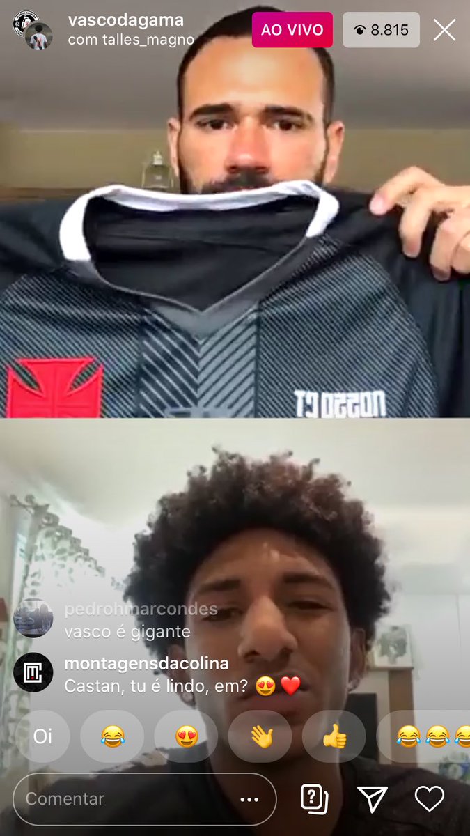 - Assumi o Instagram do Vascão, estou até nervoso. Vou convidar um parceiro meu aqui, mas ele está quebrando. Eu, com 33 anos, estou dominando a tecnologia. Ele, com 17, não consegue entrar ao vivo - brincou Castan.