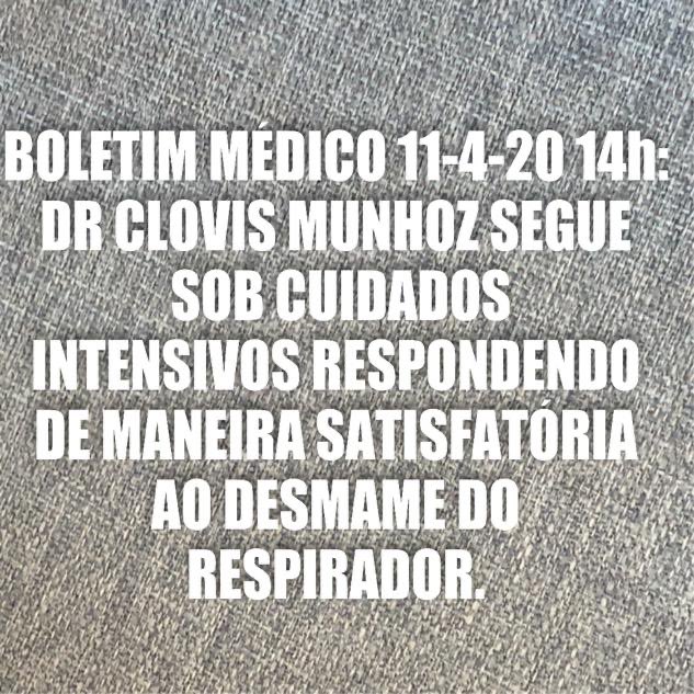 28/03/20 - Dr. Clóvis Munhoz vem respondendo de maneira satisfatória ao tratamento, informa VascoMed