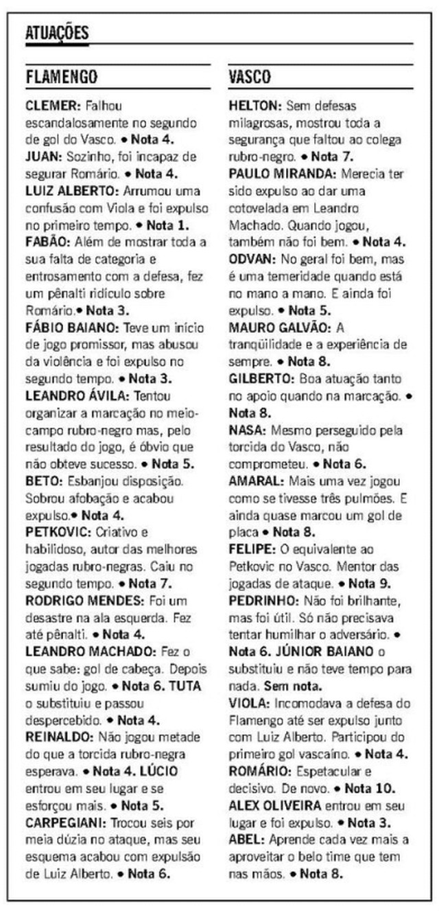 Um dos protagonistas do famoso Chocolate da Páscoa aplicado pelo Vasco sobre o Flamengo em 23 de abril de 2000, o autor de um dos gols da vitória cruz-maltina por 5 a 1 e das polêmicas embaixadinhas, topou a brincadeira proposta pelo GloboEsporte.com de dar notas a si próprio e aos companheiros que participaram daquele jogo.