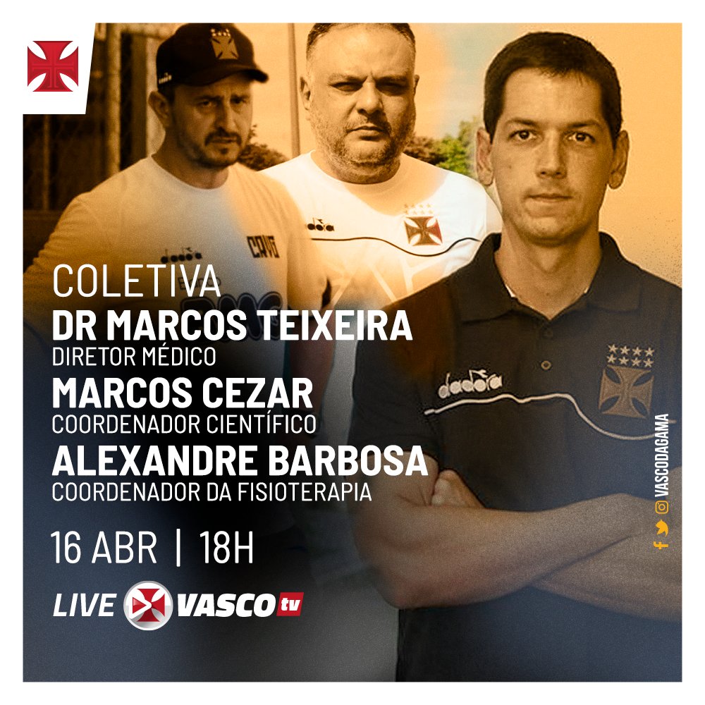 VascoTV terá entrevista com dr. Marcos Teixeira, Marcos Cezar e Alexandre Barbosa nesta 5ª às 18h