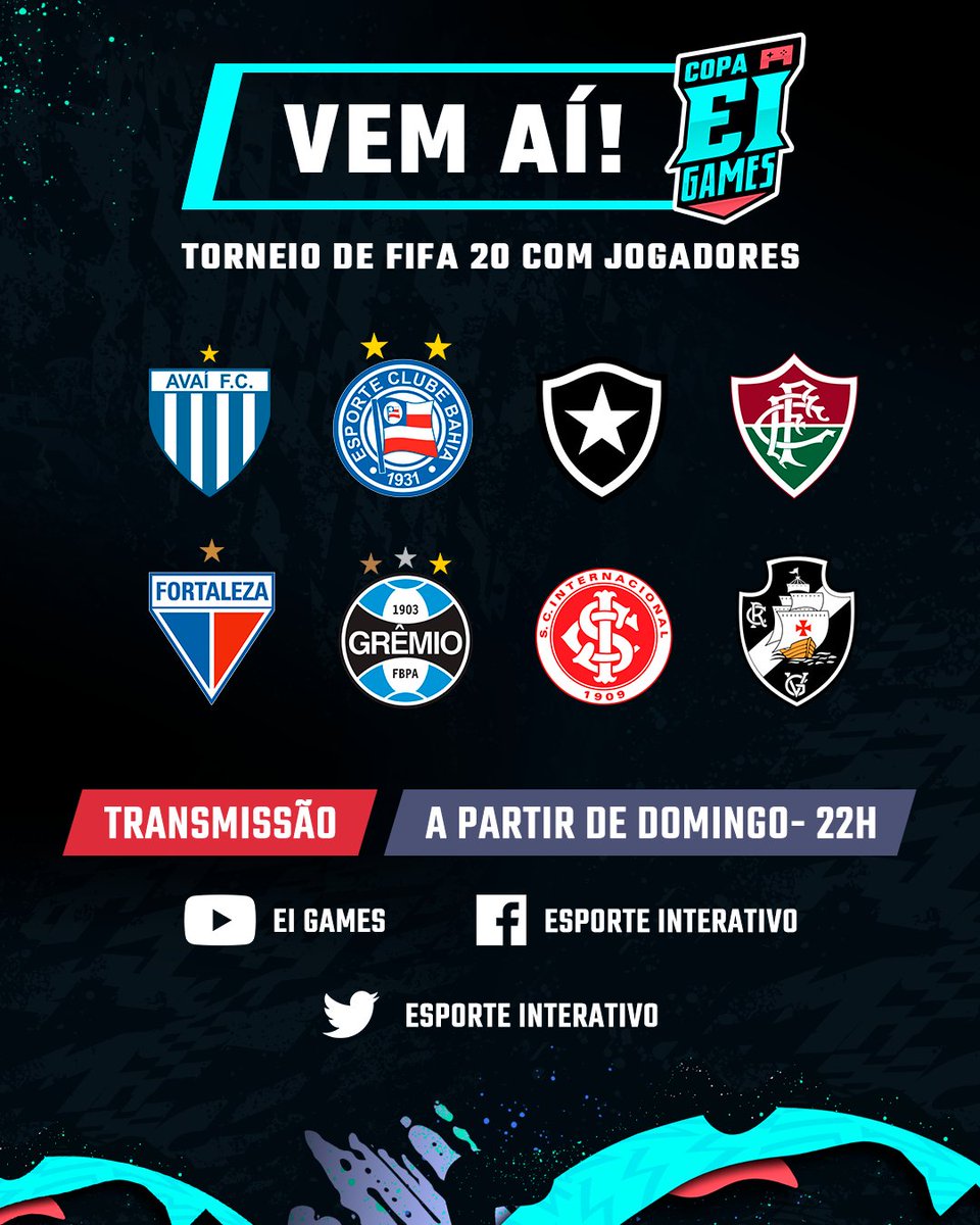 ACHOU MESMO QUE NÃO IA TER FUTEBOL? ACHOU ERRADO! Para matar um pouco da saudade, convidamos OITO CRAQUES do BRASILEIRÃO para participar da Copa EI Games de FIFA 20! ? É a partir desse domingo, no YouTube do EI Games, no Facebook e no Twitter do Esporte Interativo! #CopaEIGames