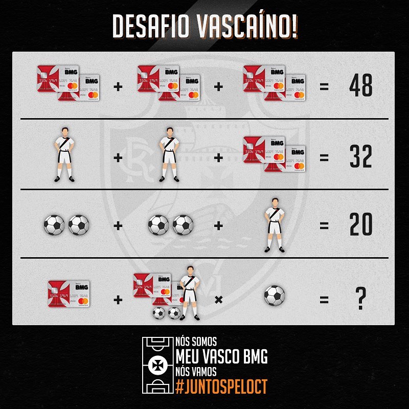 Instagram Meu Vasco BMG publica desafio matemático; tente resolver