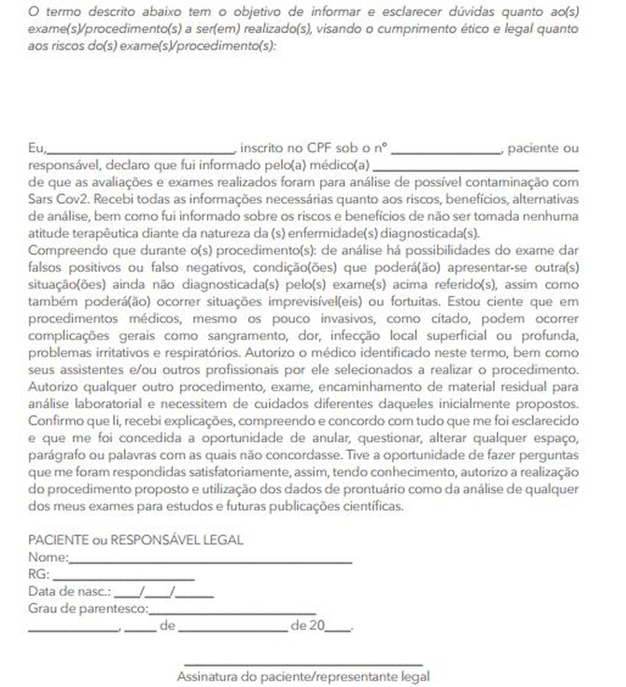 Os médicos de cada clube devem enviar formulários - terão cada qual registro de login e senha para preencher diretamente em sistema interno da CBF - com todas informações possíveis sobre os jogadores - dados pessoais completos, além de descrição de sintomas, tipo de teste realizado, o resultado do teste e a evolução do paciente.