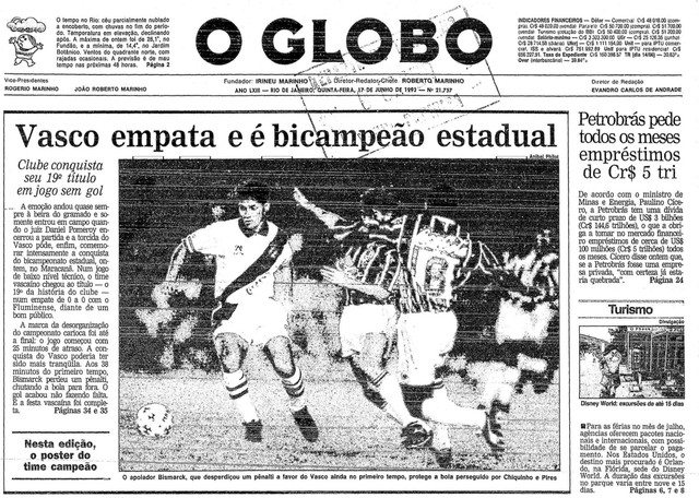 Uma história marcante também foi em 1993, quando o Vasco se sagrou bicampeão estadual. O Bismarck perdeu um pênalti no primeiro tempo, e, no intervalo, eu só ouvi o Bismarck falar que a gente ia perder.