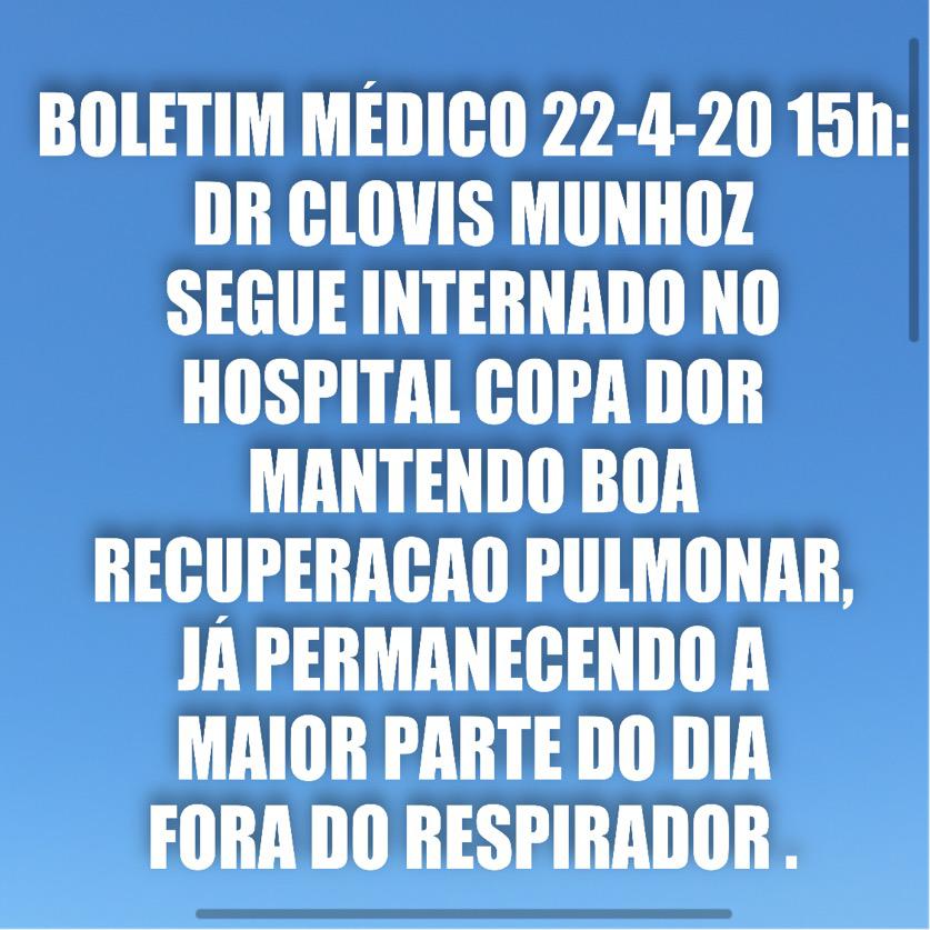 Dr. Clóvis Munhoz segue mantendo boa recuperação pulmonar, informa VascoMed