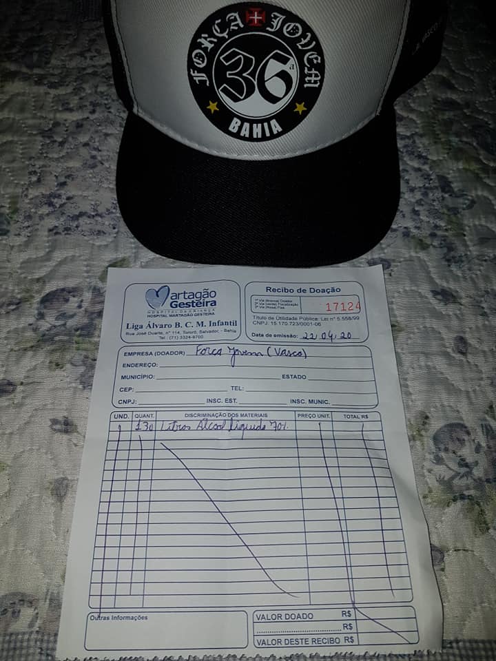 FJV - 36ª FAMÍLIA - DOAÇÃO DE ÁLCOOL 70º PARA O HOSPITAL MARTAGÃO GESTEIRA (SALVADOR/BA)