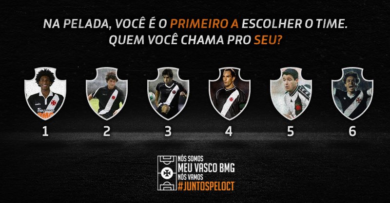 Meu Vasco BMG pergunta ao torcedor qual jogador ele escolhe 1º na pelada; confira opções