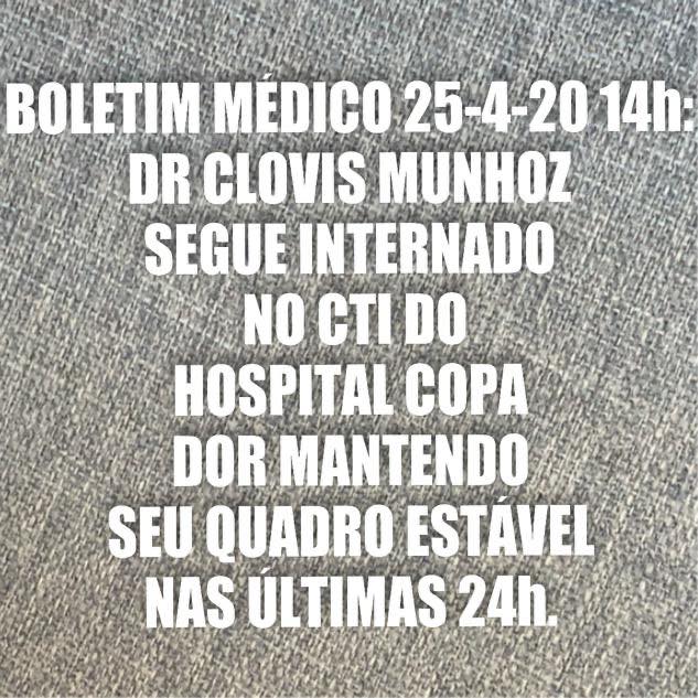 Dr. Clóvis Munhoz segue no CTI com quadro estável nas últimas 24 horas, informa VascoMed