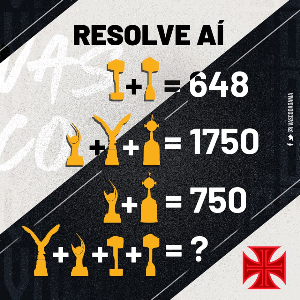Vasco divulga desafio matemático em suas redes sociais; confira