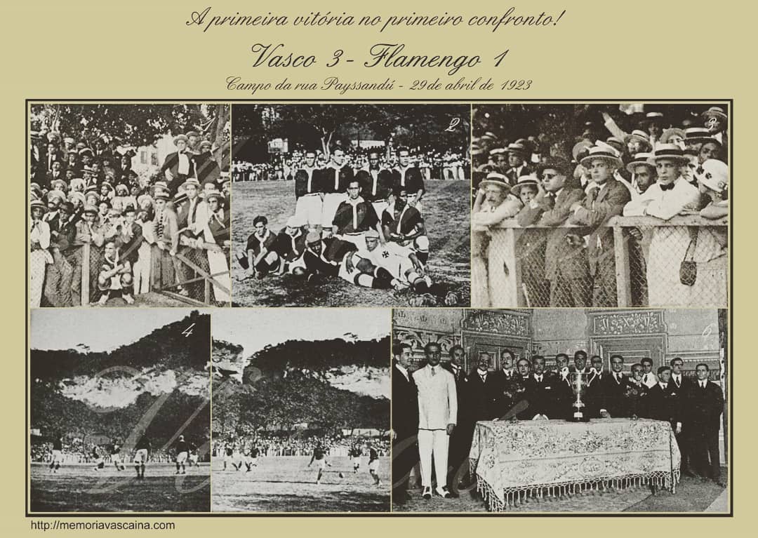 #memovas (1) O camisa negra Arthur junto da alegre e feliz torcida vascaína. (2) A equipe dos Camisas Negras campeã de 1923. (3) A assistência flamenga. (4) O Vasco no ataque. (5) A tentativa de rebote. (6) A diretoria do Vasco recebendo a taça do Campeonato de 1923 em solenidade promovida pela Liga Metropolitana de Desportos Terrestres (LMDT). O "scratch" vascaíno do 1º Team: Nelson - Leitão e Claudio - Nicolino, Claudionor e Arthur - Paschoal, Torteroli, Arlindo, Cecy e Negrito.