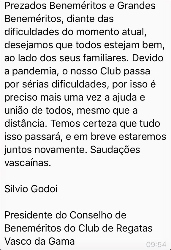 Nota Oficial do presidente do Conselho de Beneméritos a respeito do momento em que atravessamos.