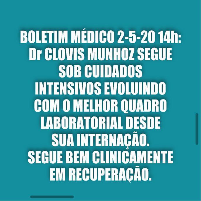 Dr. Clóvis Munhoz segue bem clinicamente em recuperação, informa VascoMed