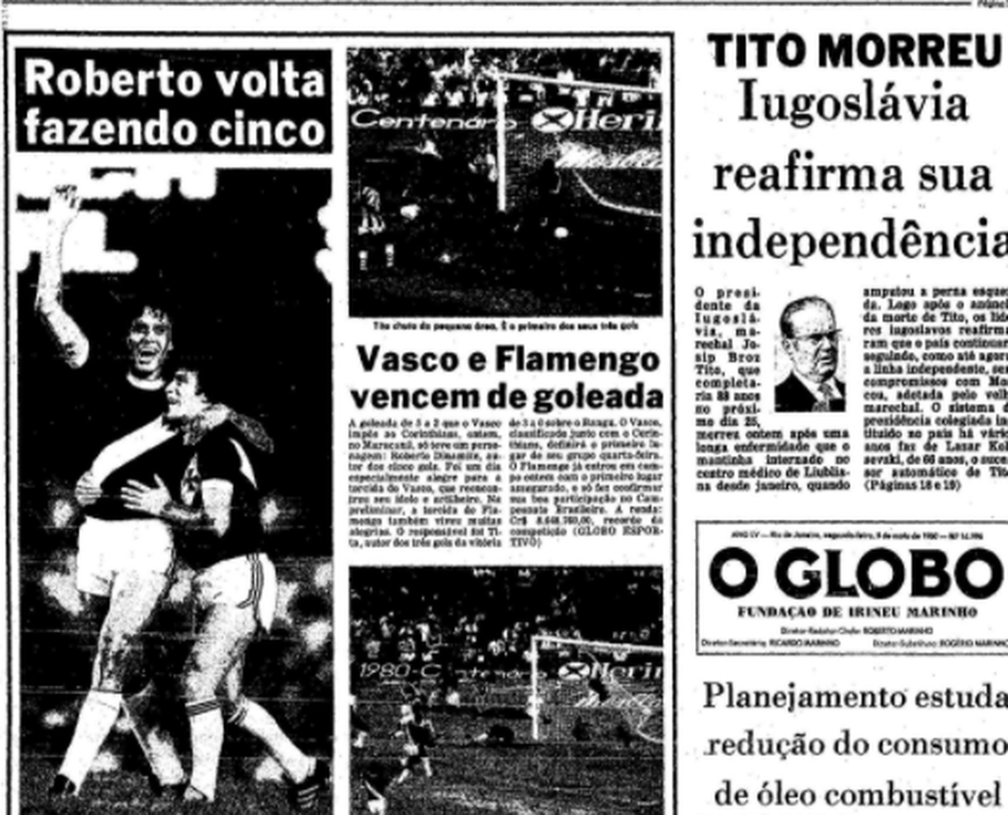 Em 1980, ele esteve a um passo do Flamengo e chegou a falar como jogador rubro-negro. Pressionado, o Vasco, através de Eurico Miranda, atravessou a negociação e repatriou seu maior ídolo. Há exatos 40 anos, em 4 de maio daquele ano, Roberto voltava ao Maracanã com a camisa cruz-maltina, em uma das maiores atuações de sua carreira. Fez cinco gols contra o Corinthians.