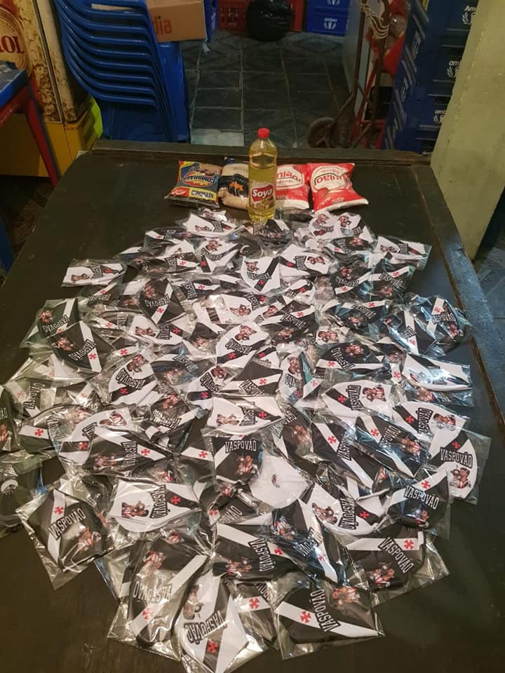 Grupo de vascaínos troca máscaras personalizadas por alimentos; conheça a VasPovão