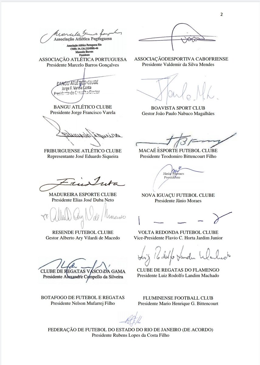 Portuguesa, Cabofriense, Bangú, Boavista, Friburguense, Macaé, Madureira, Nova Iguaçu, Resende e Volta Redonda também assinaram a nota submetida aos governantes.