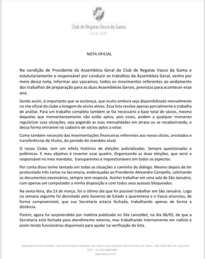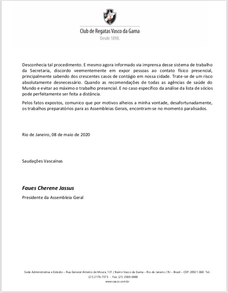 Na ocasião, criticou a postura da direção em não permitir o acesso à lista de modo virtual, diante da atual pandemia. Apenas presencialmente, na Secretaria.