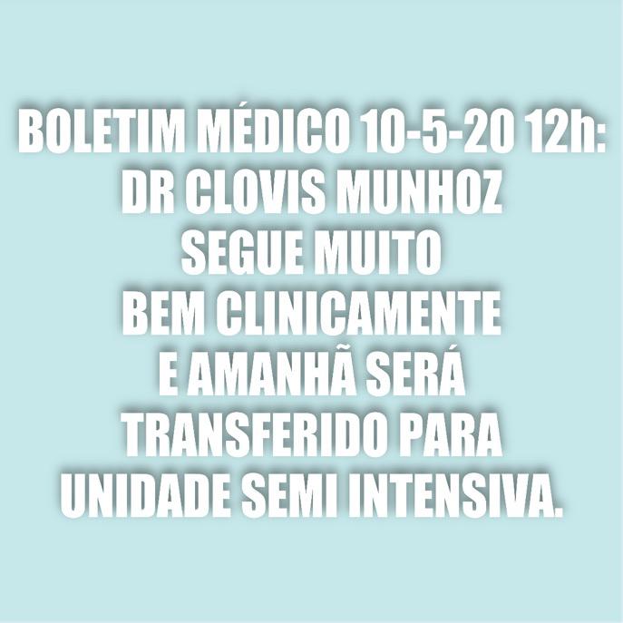 Dr. Clóvis Munhoz se recupera bem e será transferido nesta 2ª para unidade semi-intensiva, informa VascoMed