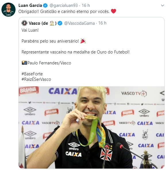 Luan responde mensagem de aniversário do Vasco: 'Gratidão e carinho eterno por vocês'