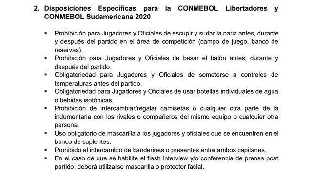 No documento, a Conmebol lista em dois artigos novas determinações. Um deles trata apenas de mudanças e adaptações de regras disciplinares para os jogos na Libertadores e na Sul-Americana. Confira abaixo:
