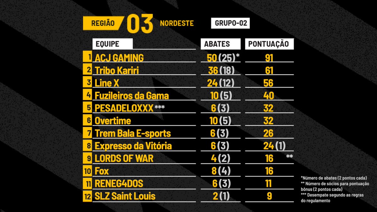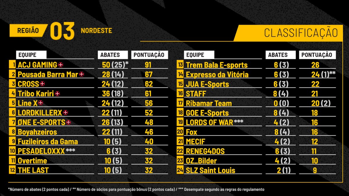 E-Sports: Confira a classificação da Região 3 do Torneio Vasco de Free Fire