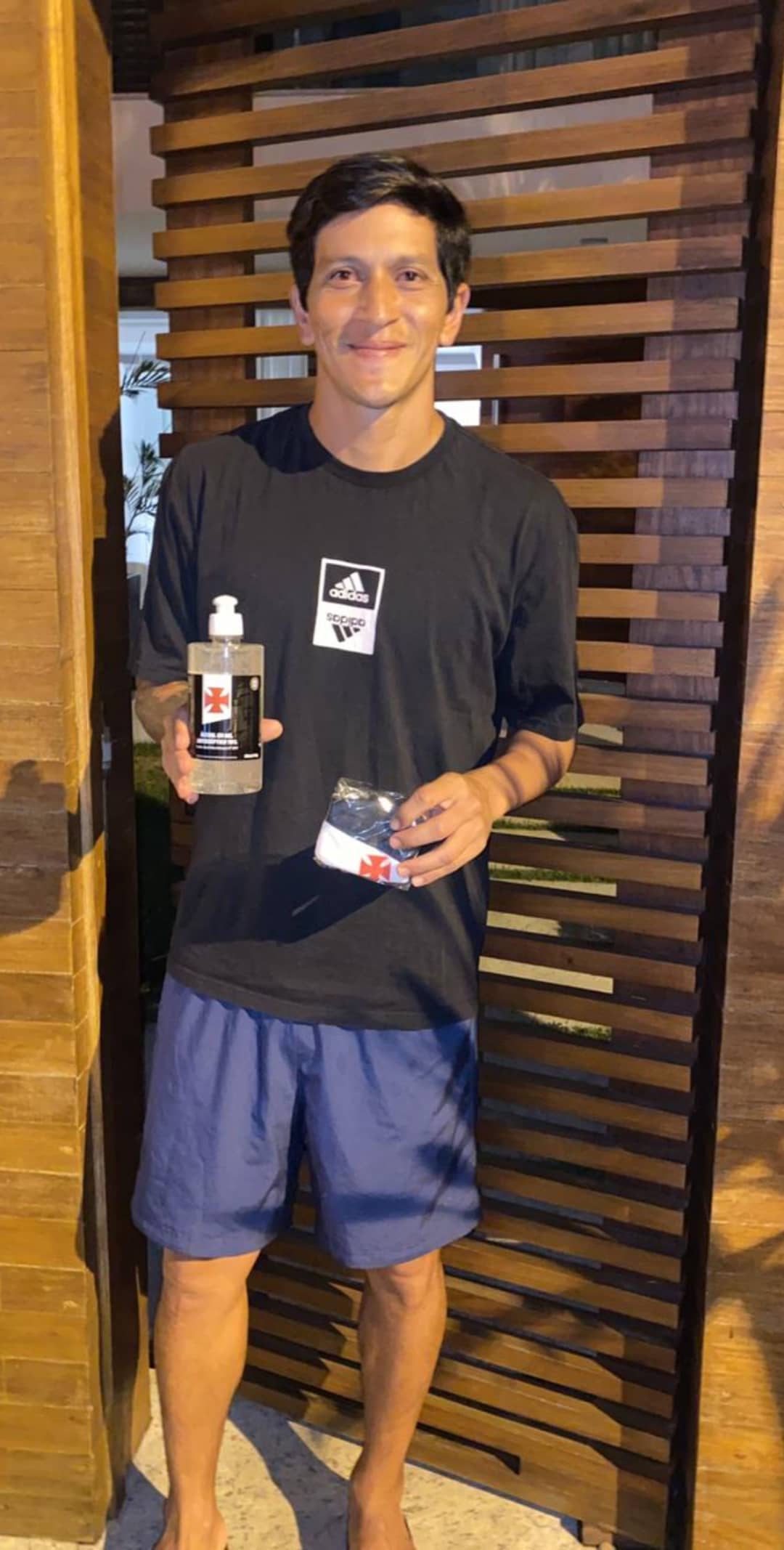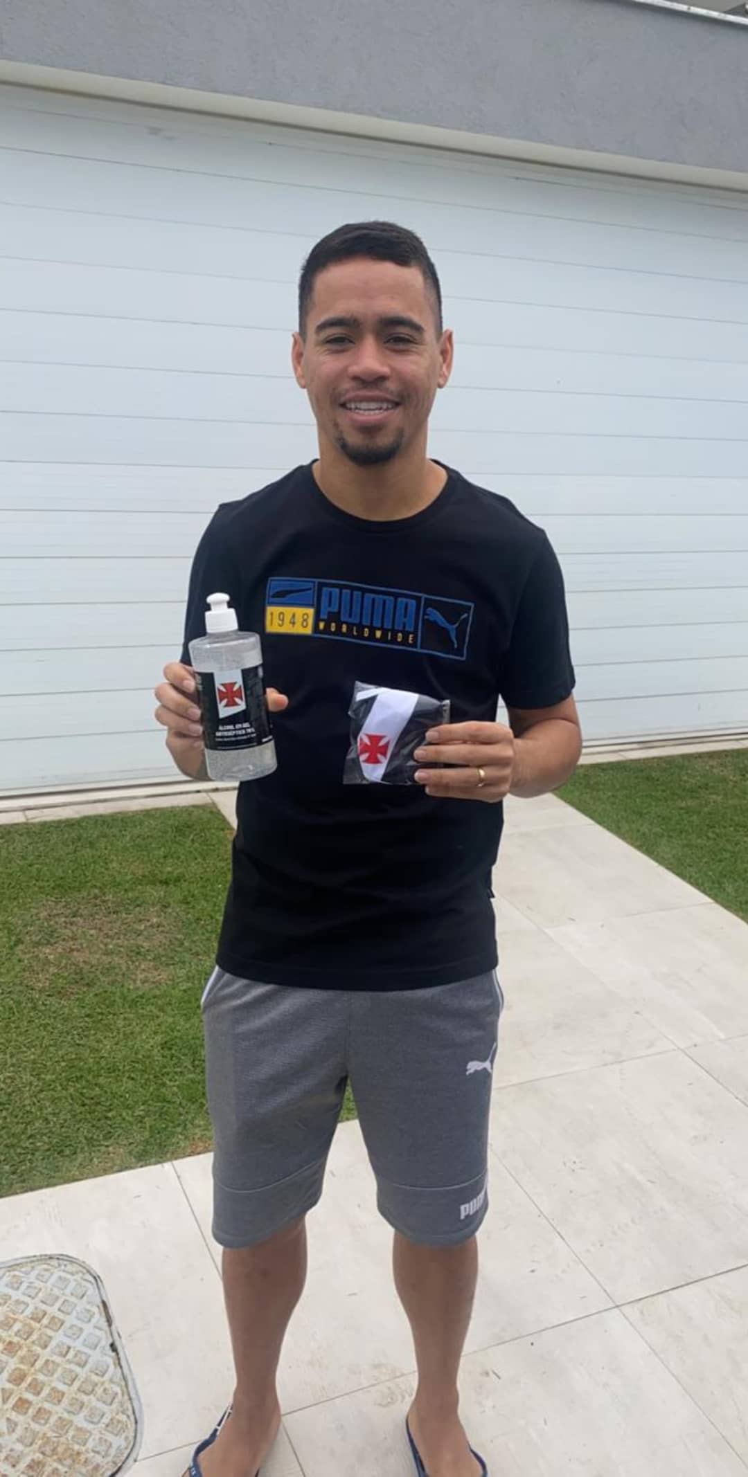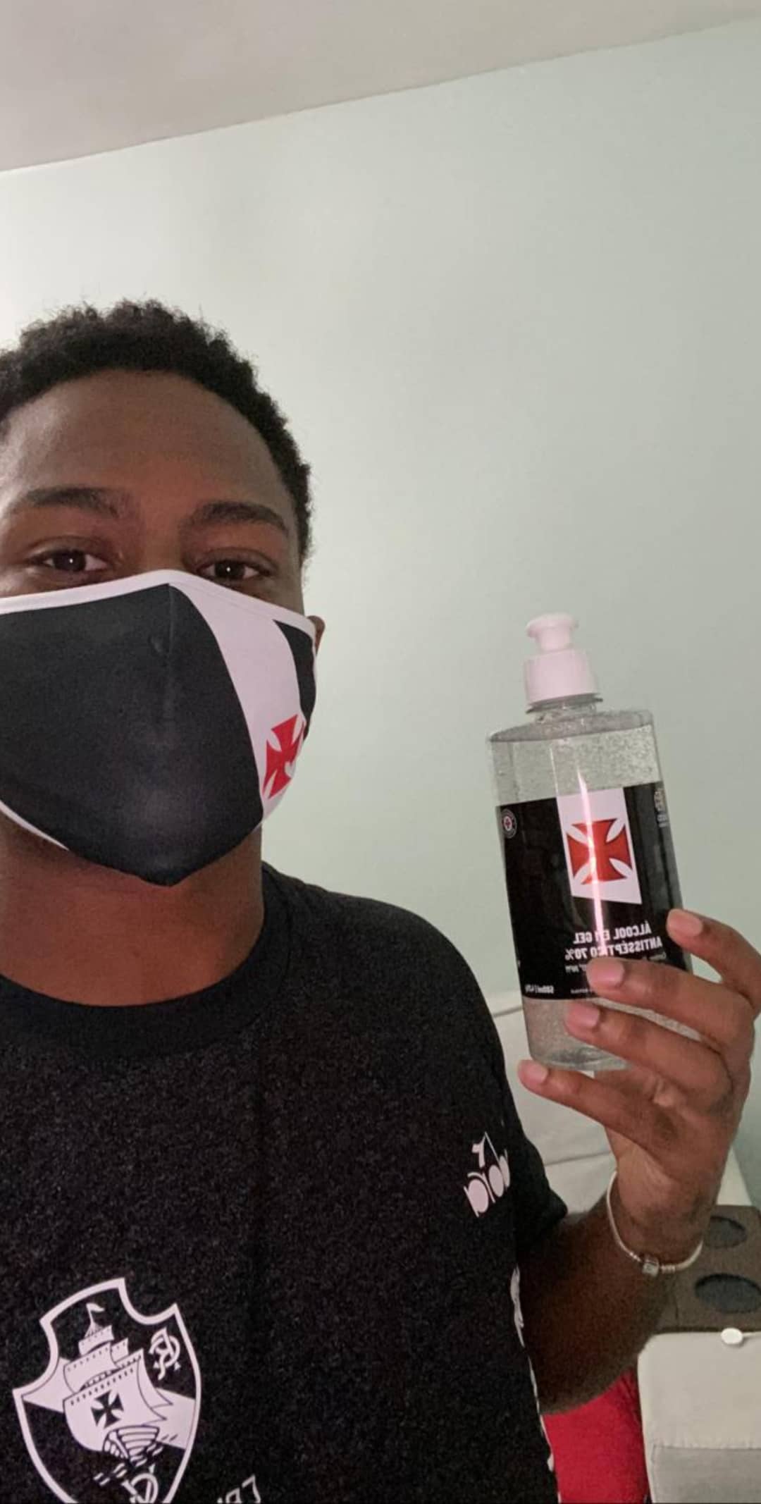 Vasco publica mais fotos dos jogadores com o kit de máscara e álcool gel do clube; veja