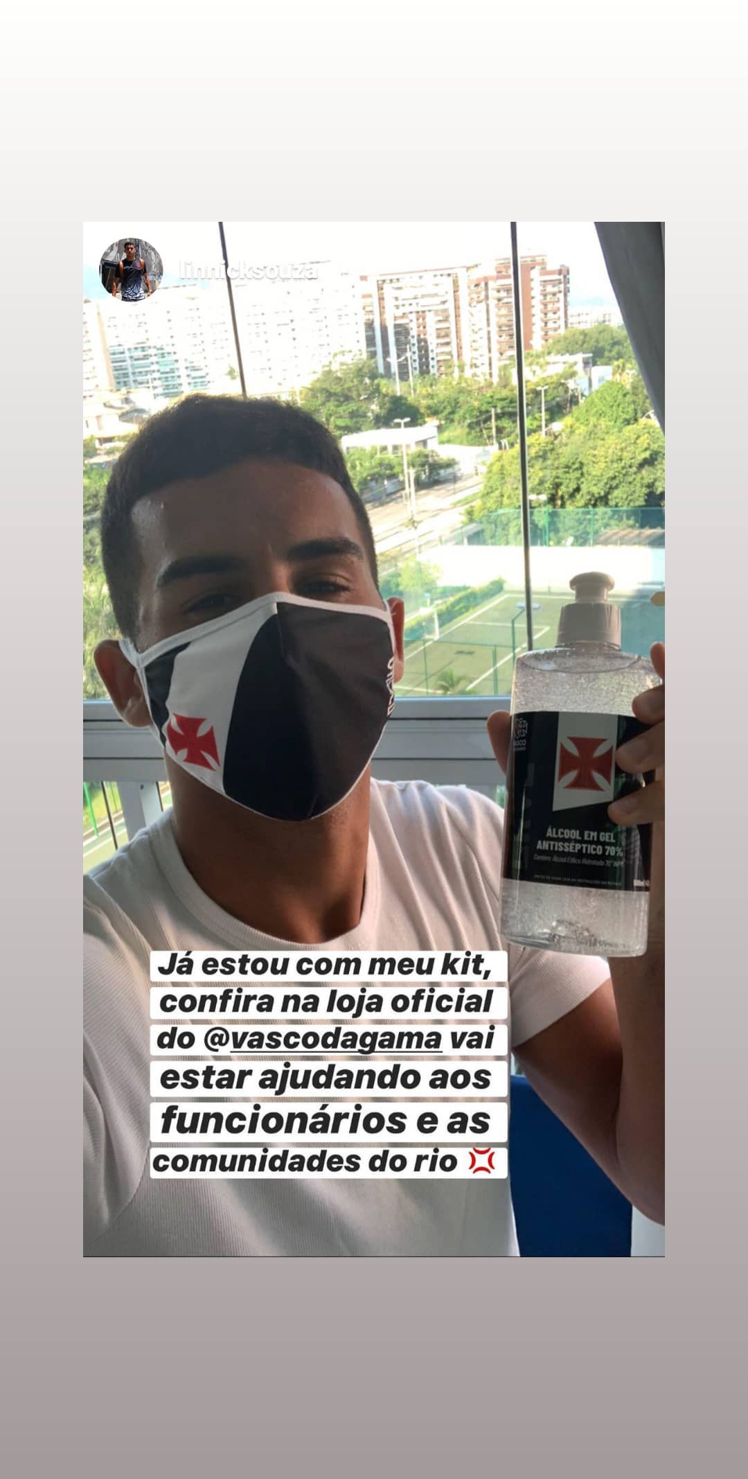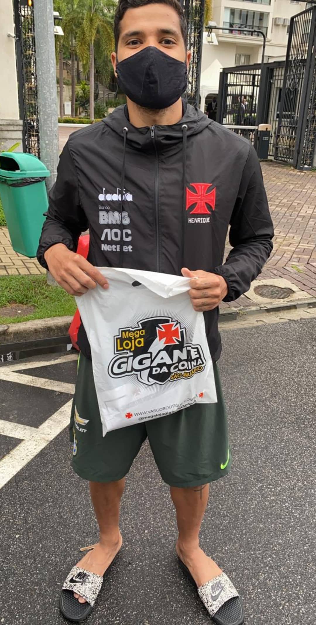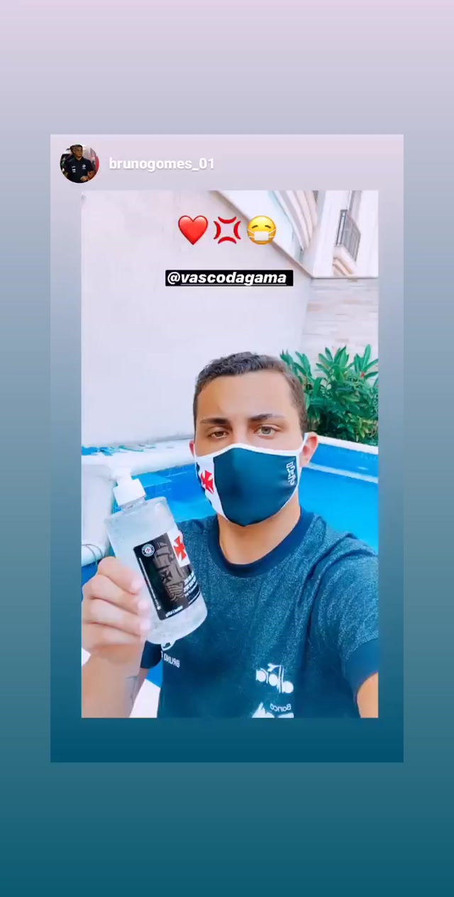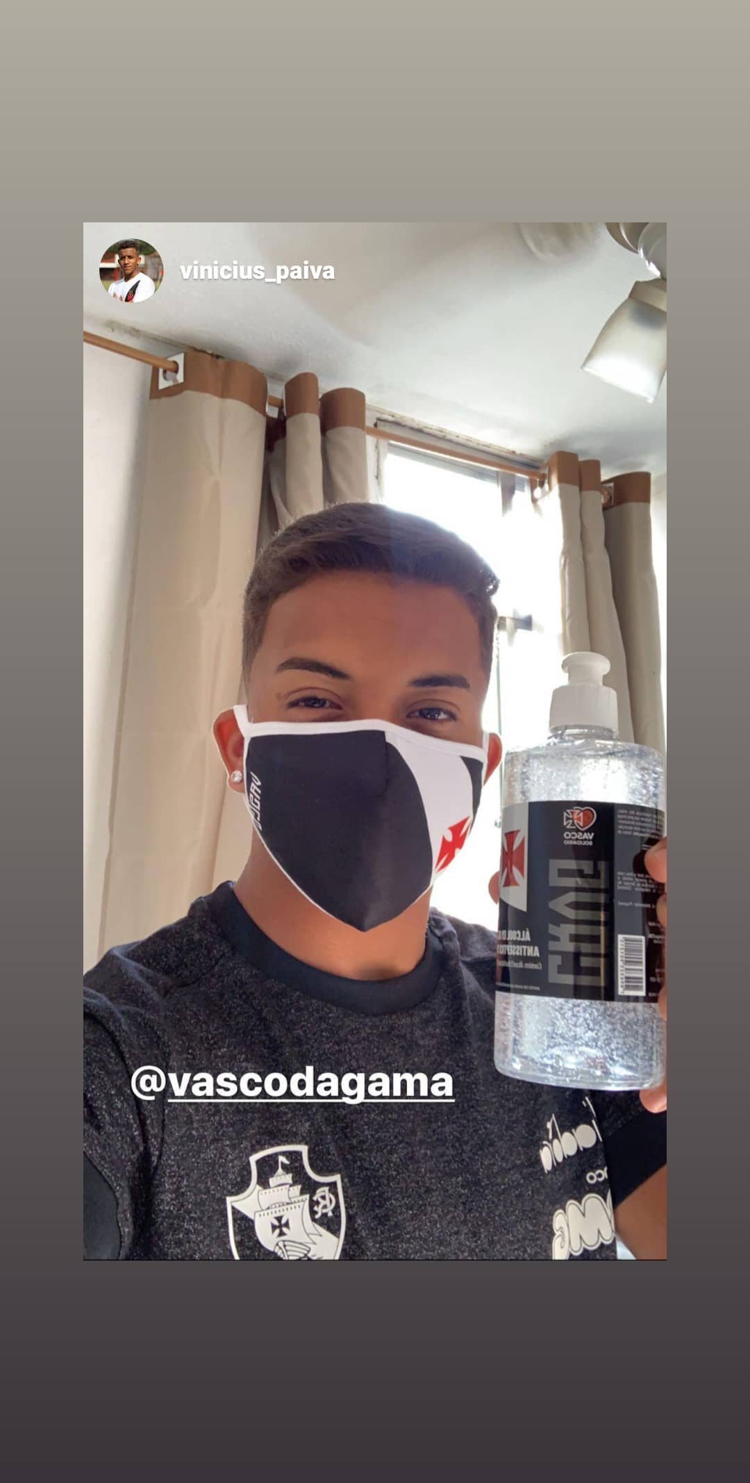 Vasco publica mais fotos dos jogadores com o kit de máscara e álcool gel do clube; veja