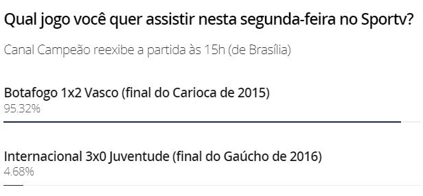 GloboEsporte.com abre votação de qual jogo Sportv exibirá nesta 2ª; final do Estadual 2015 concorre