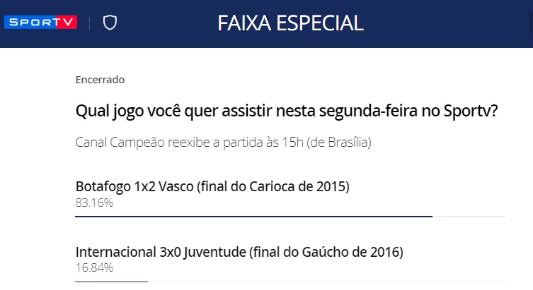 17/05/20 - GloboEsporte.com abre votação de qual jogo Sportv exibirá nesta 2ª; final do Estadual 2015 concorre