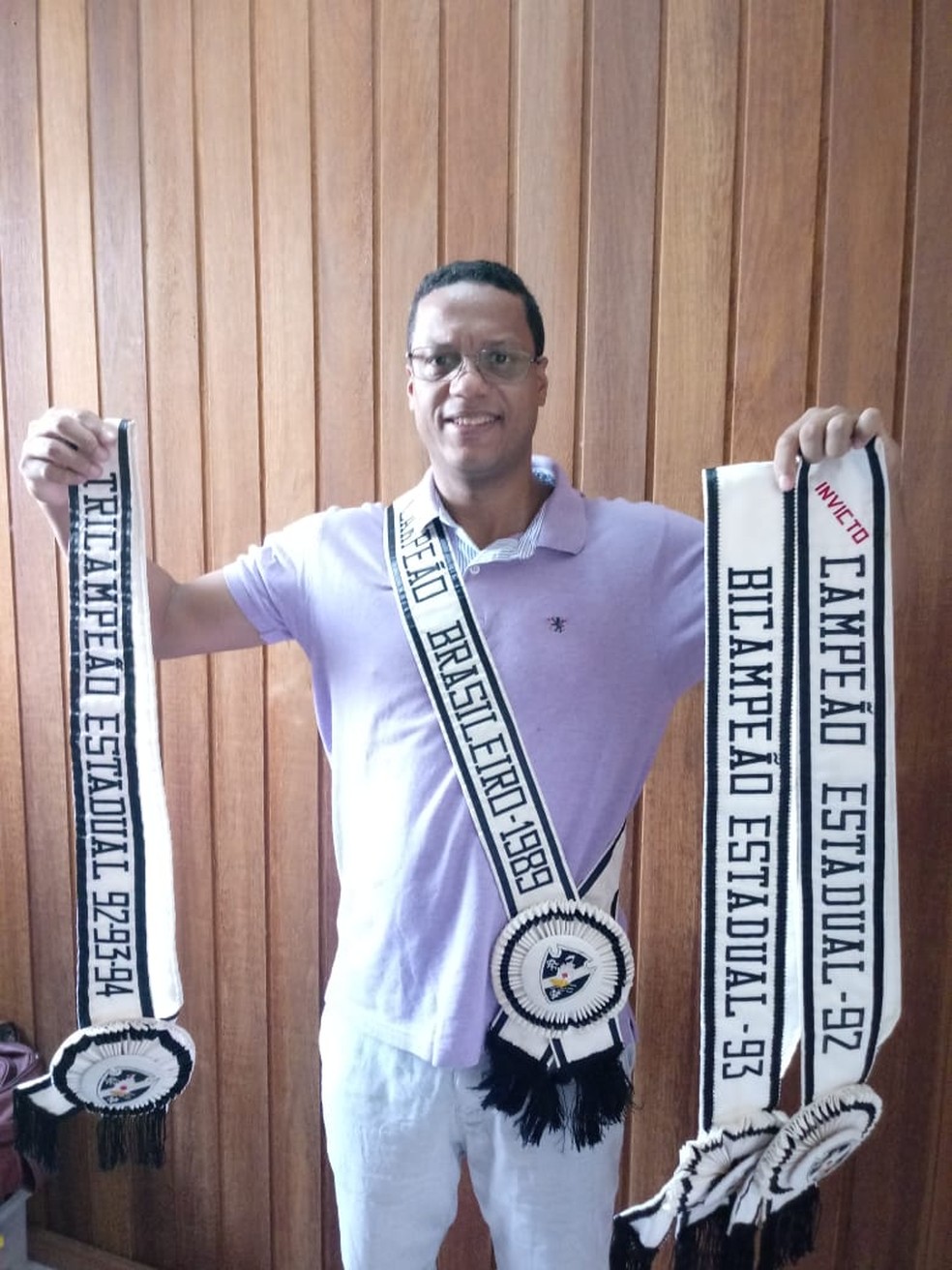 Hoje aos 49 anos, Sidnei exibe as faixas do tri carioca (92/93/94) e do Brasileiro (1989) |