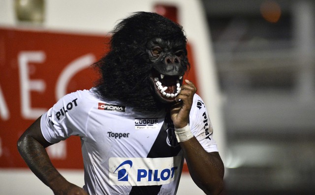 Thalles com a tradicional máscara de gorila na comemoração do gol no dérbi |