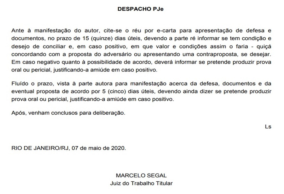 Foi marcada, à época, nova audiência para iniciar o rito do processo para 1º de abril. Porém, a pandemia do Covid-19 fez com que o Tribunal Regional do Trabalho da 1ª Região suspendesse encontros, algo recomendado pelas autoridades sanitárias.