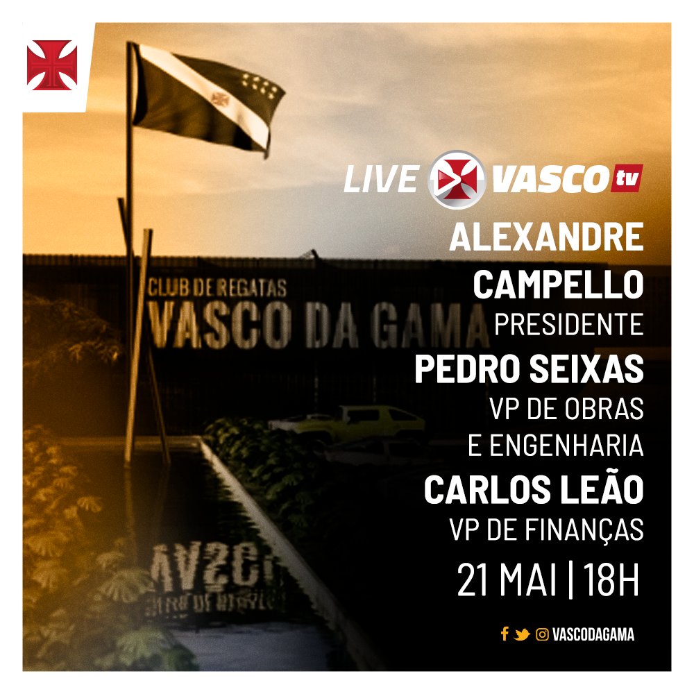 Campello e VPs Pedro Seixas e Carlos Leão participarão de live da VascoTV nesta 5ª às 18h