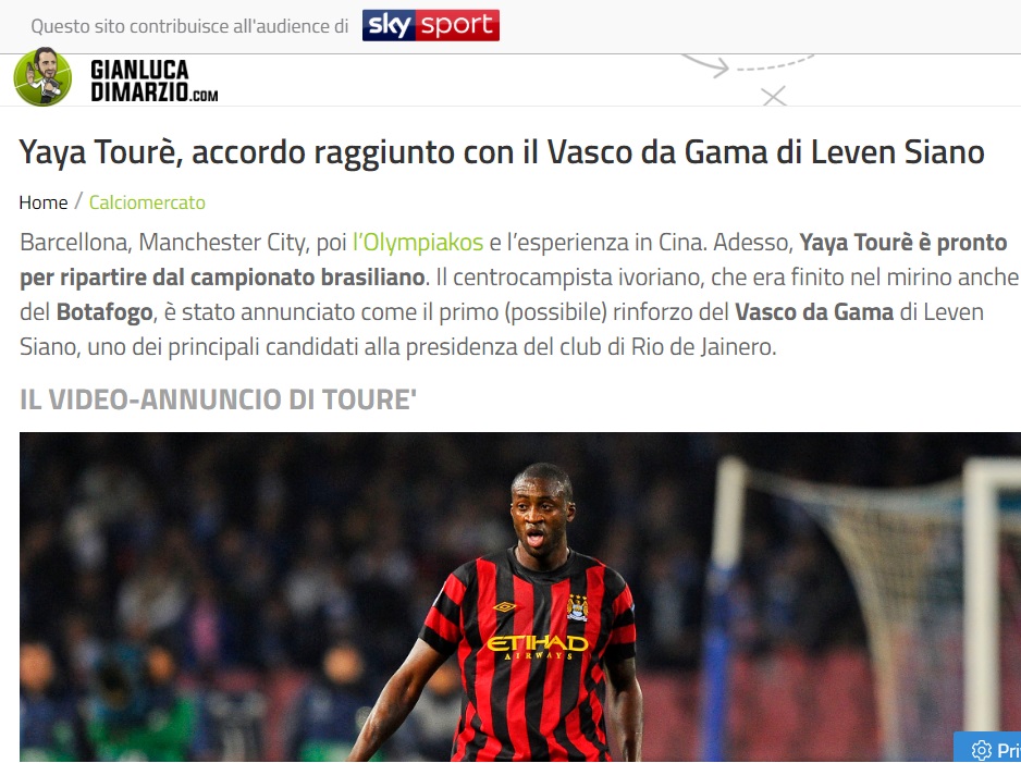 Acordo de Leven Siano com Yaya Touré repercute na imprensa internacional