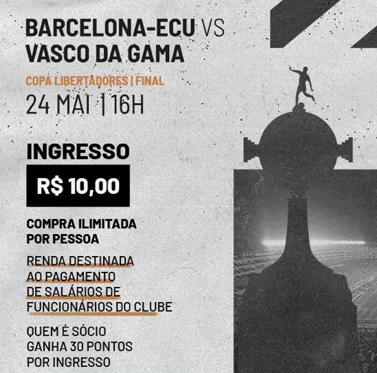 Vasco segue vendendo ingressos simbólicos para a final da Libertadores de 1998, que será reprisada neste domingo