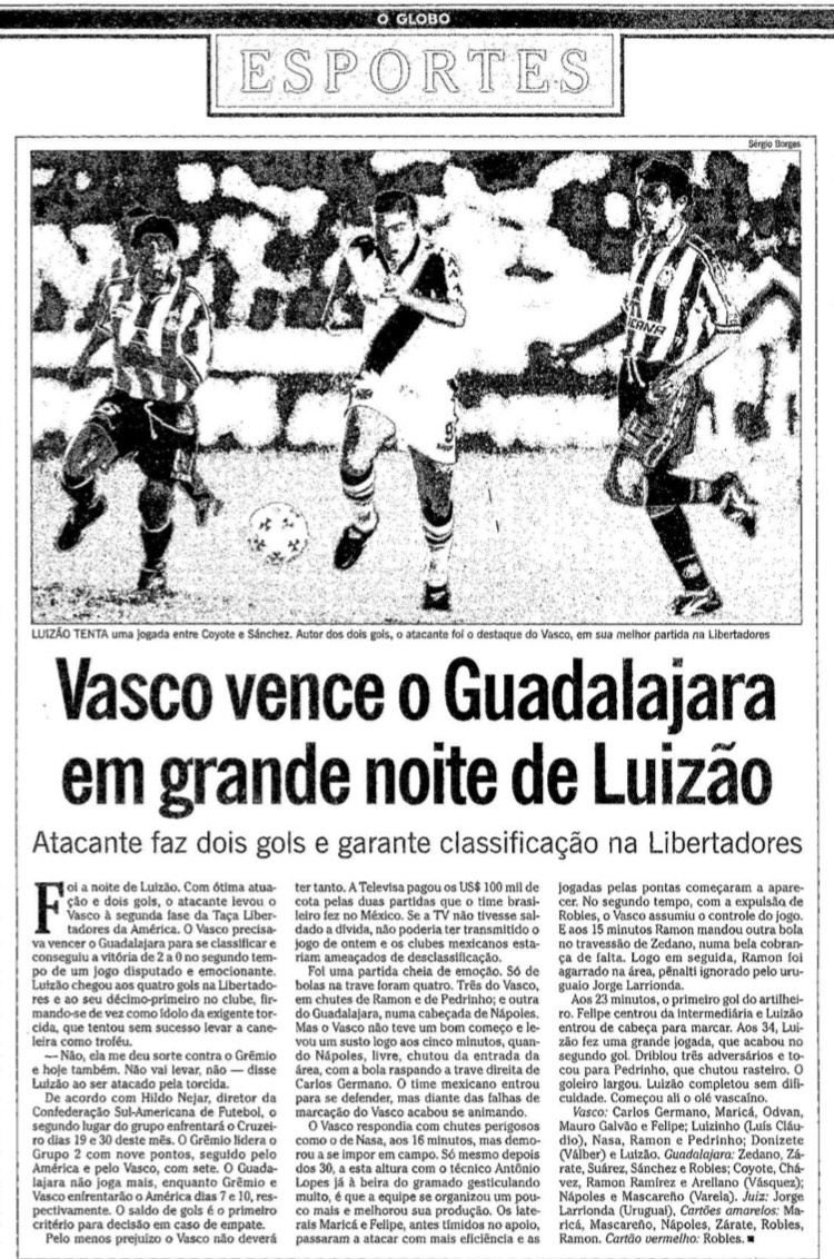 Luizão, autor de dois gols naquele jogo: "Nós tínhamos perdido os dois primeiros jogos. Empatamos o terceiro e teríamos três jogos em São Januário. Vencemos o Grêmio, eu fiz dois gols. E contra o Chivas foi incrível. Fiz um dos gols mais bonitos dos que marquei com a camisa do Vasco. Foi magnifíco. Uma partida incrível, São Januário lotado, a torcida empurrando a gente. Nós sabíamos que vencer esse jogo garantiria a classificação e eu tava numa noite iluminada. Sabia como o Felipe dava aquele drible curto e cruzava. Eu combinava com ele. Eu antecipei e fiz um gol no primeiro pau. O segundo foi coisa rara minha, saí driblando todo mundo e toquei pro Pedrinho, que bateu cruzado, a bola sobrou e eu conferi. Foi uma noite inesquecível pra mim, pro Vasco, porque começamos a crescer dentro da Libertadores. No jogo contra o Grêmio, a torcida comprou a ideia de São Januário ser o nosso Caldeirão"