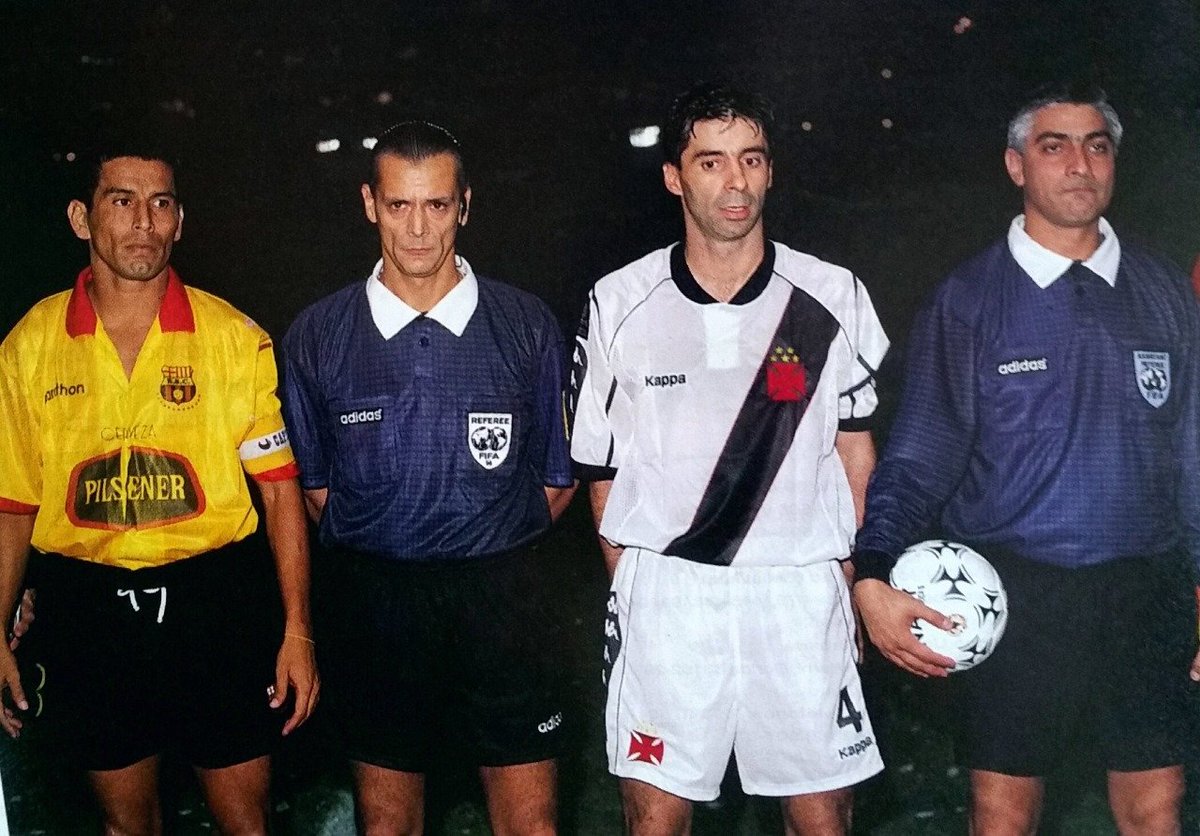 Veja foto de Mauro Galvão com o capitão do Barcelona-EQU antes da decisão da Libertadores de 1998