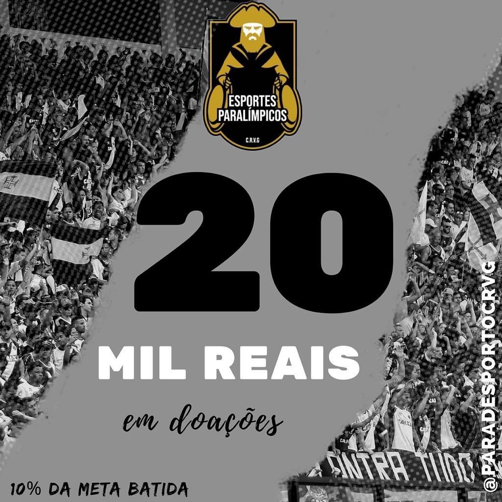 Arrecadação para a equipe paralímpica do Vasco atinge R$ 20 mil, o que corresponde a 10% da meta