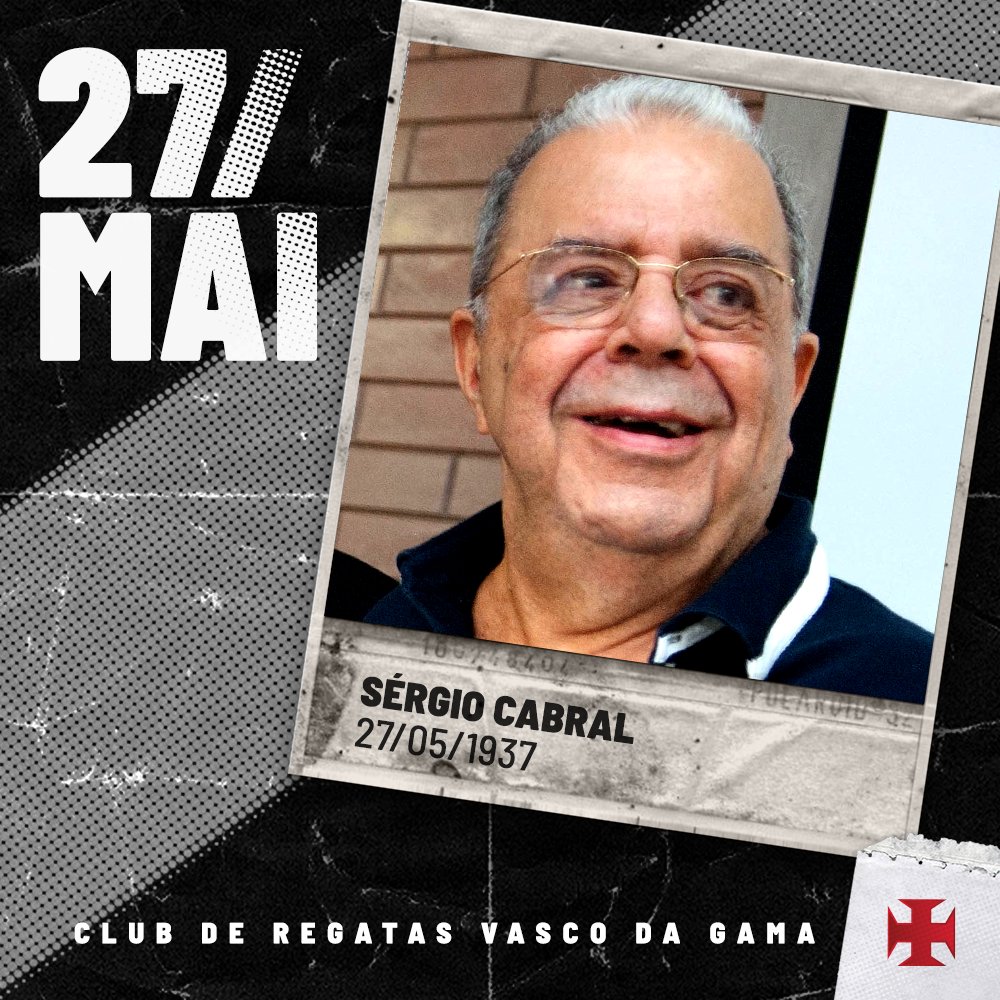 Em rede social, Vasco parabeniza o jornalista vascaíno Sérgio Cabral pelos seus 83 anos