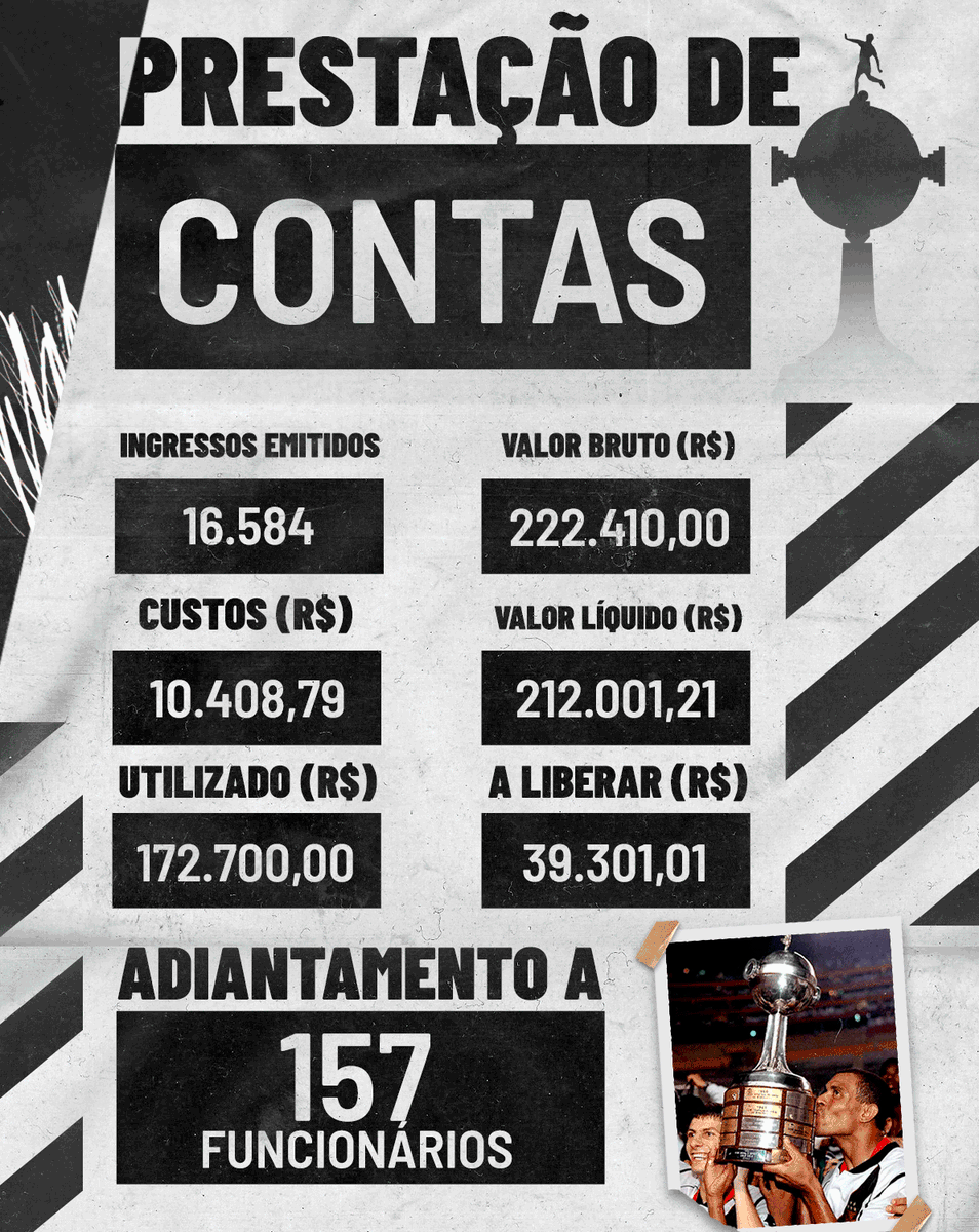 Aos nossos torcedores estamos trazendo a prestação de contas dos ingressos solidários do último domingo.